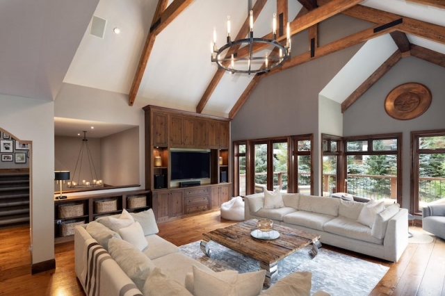 Indulge in the opulence of modern bathrooms, adorned with premium fixtures, and relax in the expansive living room by the stunning floor-to-ceiling stone fireplace. The open-concept layout flows effortlessly, creating an inviting space for entertaining guests.