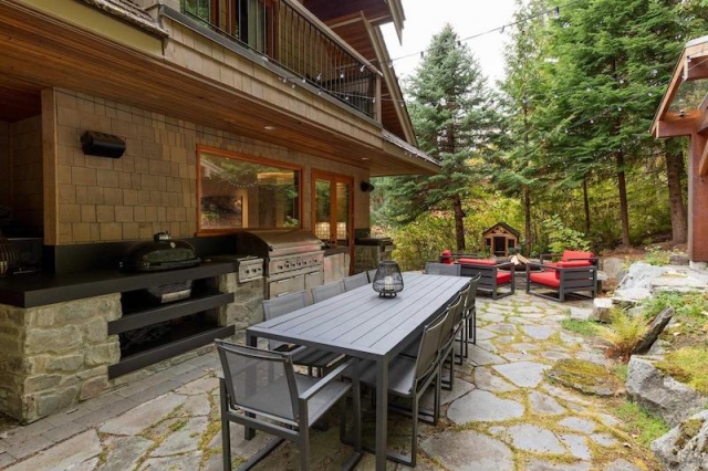 Escape to your private oasis in the landscaped backyard, thoughtfully designed for outdoor living. Host al fresco dinners in the full outdoor kitchen, unwind by the fire pit surrounded by plush seating, or soak your cares away in the hot tub nestled under a cedar pergola, all while enveloped in the tranquility of nature. With a Sonos sound system integrated throughout the home, every moment is elevated by your favorite tunes. Whether hosting soirées or enjoying quiet evenings, the ambiance is always just right. Park with ease in the spacious double garage, offering ample storage for all your outdoor gear, ensuring your adventures in Whistler are hassle-free.